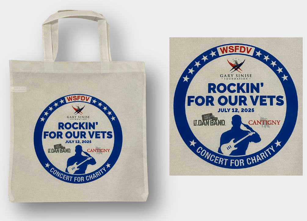 Carry your support wherever you go. This sturdy tote features the full-color WSFDV ROCKIN’ FOR OUR VETS logo—perfect for groceries, events, or everyday errands.
